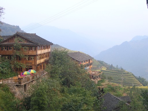到桂林龙胜龙脊梯田的龙脊人家客栈去过大年 同志们:到桂林龙胜龙脊梯田的龙脊人家客栈去过大年,(圣诞节,元旦) 住: 桂林龙胜龙脊梯田龙脊人家客栈吊脚楼三面被层层的梯田环绕,那吊脚楼门前石板小路曲经通幽,单家独户,具有居高临下的孤独美,当湿碌碌的青石板路把你引向它的门腰时,你也许就喜欢上了他,龙脊人家客栈位于“7星伴月”景点的正上方,是典型的壮家吊脚楼,他每间房间都是清一色的杉木板壁和木格门窗,临景而居,人不出门就可以观景,窗外风景由远致近风景独特:天空、白云、远山、梯田,“七星伴月”景点,龙脊山、瓦屋顶、炊烟、梨花树、景色层次分明、可谓一幅“平安村”的综合图片,美丽的老板娘(13877515061)告诉我们,中央电视台曾两次以该旅店为取景点拍摄龙脊雪景、泡田景。楼前走廊小巧别致,充满自然气息,大厅宽敞明亮,客人们都喜欢聚在那儿,吃饭看书或听乡下人悠悠扬扬的古老山歌。。。。。放下一切行囊后,在太阳照耀下开始享受具有浓郁壮族特色的农家菜。 吃: “龙脊人家 ”客栈 农家菜有薰肉,有土鸡,水库鱼,竹筒鸡,竹香鱼,竹筒饭,还有龙脊山茶(独家密制)、糯米酒、红辣椒吃 ,农家菜做得很有特色在寨子里游客中很有名气。。。。 玩: 再顺着石块铺成的山间小路,边走边腑视四周的梯田,你不能不感叹这里世世代代瑶族人民的勤劳与智慧,以及大自然给人类的恩赐:只见层层梯田拾级而下,弯弯曲曲,巧夺天工;层层梯田顺势而造,坡面垂直平平滑滑,一丝不苟;梯田与梯田首尾相连,层层依偎,高低错落,向远处延伸;一块块梯田,就像一个个美妙的音符,凑出一曲美丽动听的田园曲。。。。到吊脚楼的阳台休闲,那里视野极好,美丽的风景中,喝酒、吹牛、发呆………享受那份难得的静谧。看看日出,看看日落还是蛮不错的,有种世外桃源的感觉。那里还有很多的外国游客哦,都会很热情的跟你SAY HELLO哦,说不定,哪位牛仔牛女可以邂逅一段属于自己的姻缘哦,哈~~还有到那时侯老天爷可能会下雪 ,龙脊雪景美不胜收,星星也是很震撼的。。。。。 寨子每年都有舞龙,大型民族舞蹈等活动,很有气氛的,他们是壮族人,在那里这里过年最与众不同的地方每一家都要杀一头大肥猪,喝酒庆祝,去串门,到拿家都有酒喝,都有饭吃,肉吃不完了做腊肉,还有烟花在我们这里暂时没有被禁止,偶有爆竹声声,划过空旷的田野,让你感觉到和城市不一样的乡土气息。。。。几十块钱一天,很划算。。。
