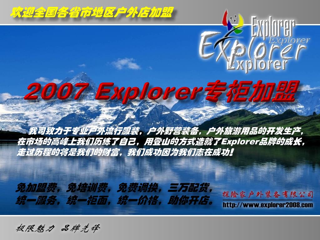 | 标题:芜湖探险家户外店五一加盟招商计划正式启动 | 树形 打印 收藏 推荐 |