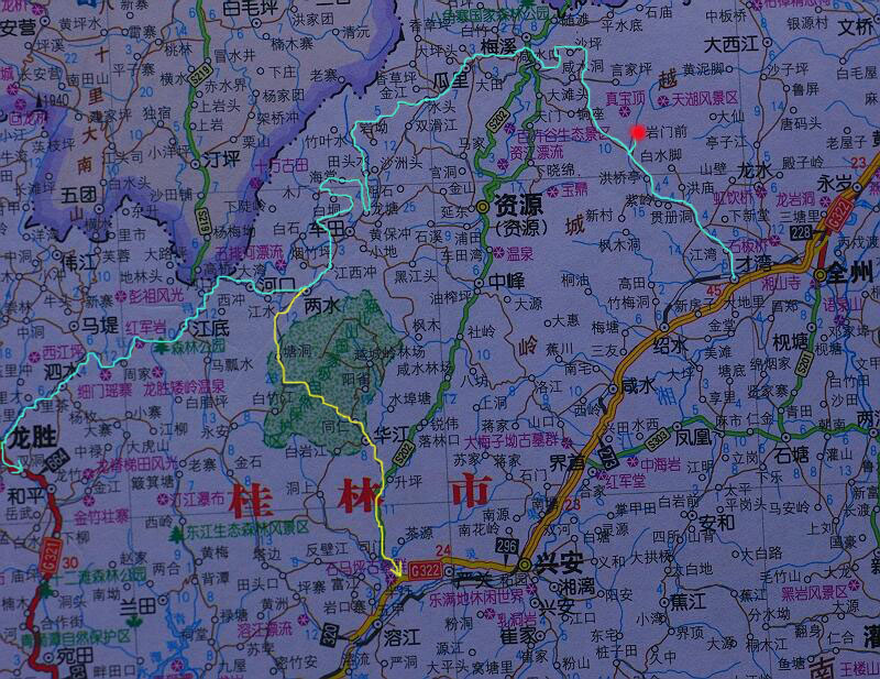 注:付地图一张,清蓝色线为本次行程基本线路,黄色线路看情况或会穿猫儿山而过。